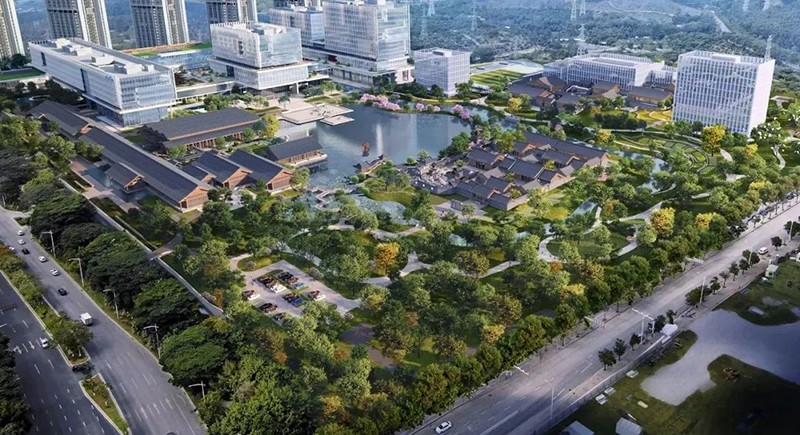 vivo研發中心占地面積179畝,涵蓋企業總部、職員公寓及相關配套;vivo培訓中心占地面積224畝,涵蓋蓮湖書院、企業展覽館及配套設施。在整體設計上,vivo全球總部項目致力打造成為一座“花園中的微型人文城市”。