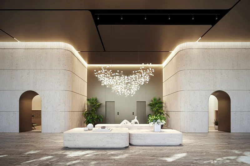 室內設計方面,強調高品質的現代飾面和Antonio Citterio設計的家具,營造出自然溫馨的氛圍。住宅單元包括兩至四臥室的布局,面積從167到371平方米不等,部分為兩層復式設計,提供類似獨棟住宅的居住體驗。