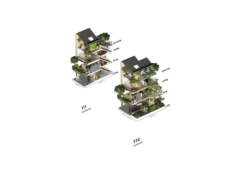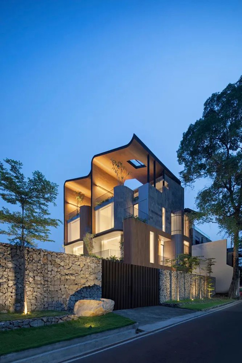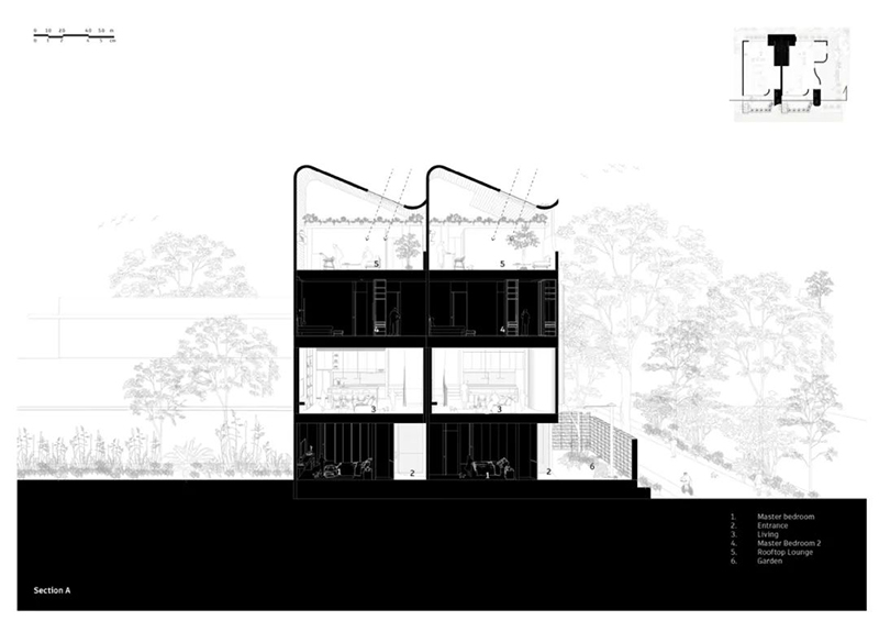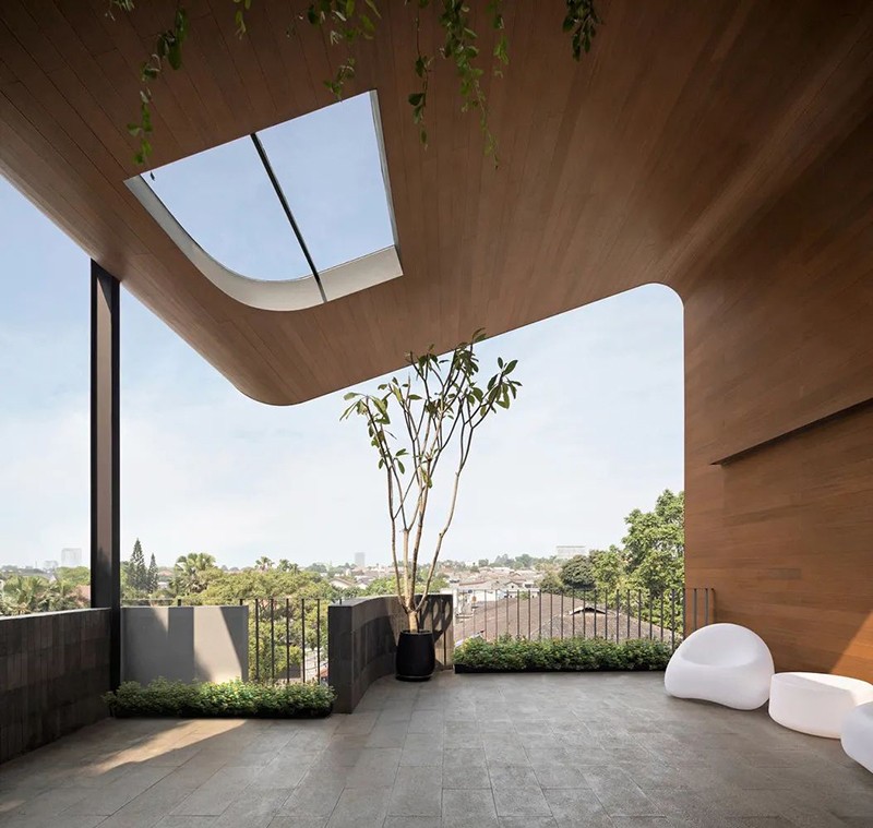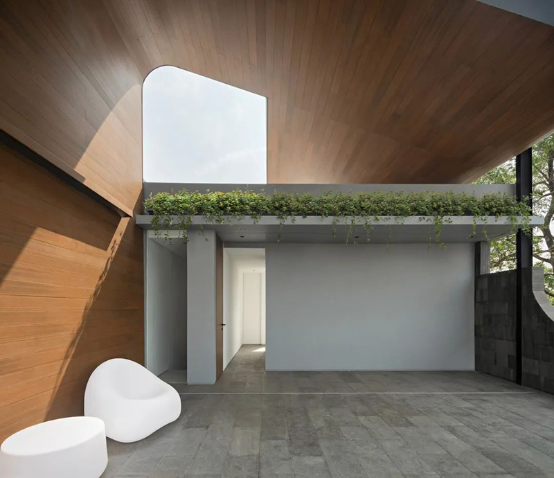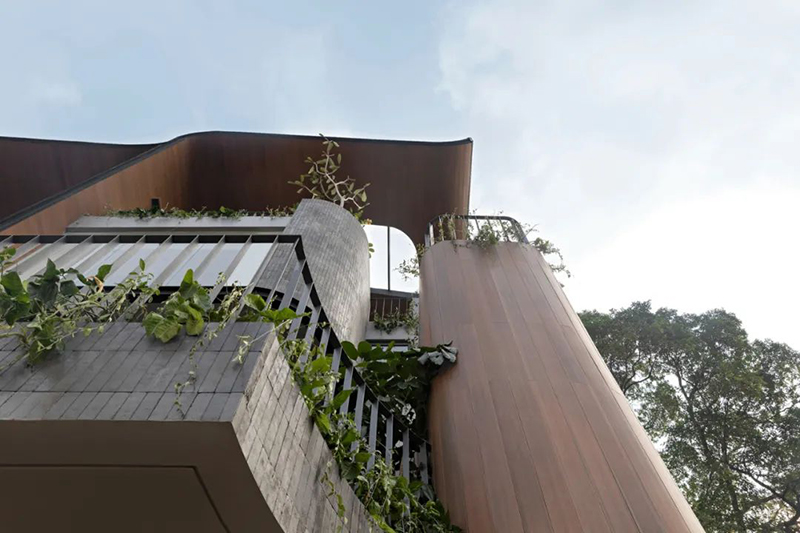 項目打破傳統庭院的平面布局,巧妙地將東南亞住宅常見的“家庭后院”概念垂直延伸至屋頂,使大自然得以在更高處生長,生活也隨之向上拓展。